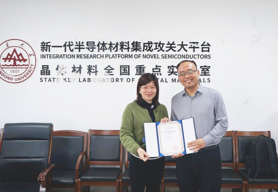 11月24日下午,济南市人民政府党组成员、副市长谢堃,山东省集成电路协会王宏志,歌尔集团董事长姜滨一行来新一代半导体材料集成攻关大平台参观调研,听取平台建设发展情况汇报。晶体材...