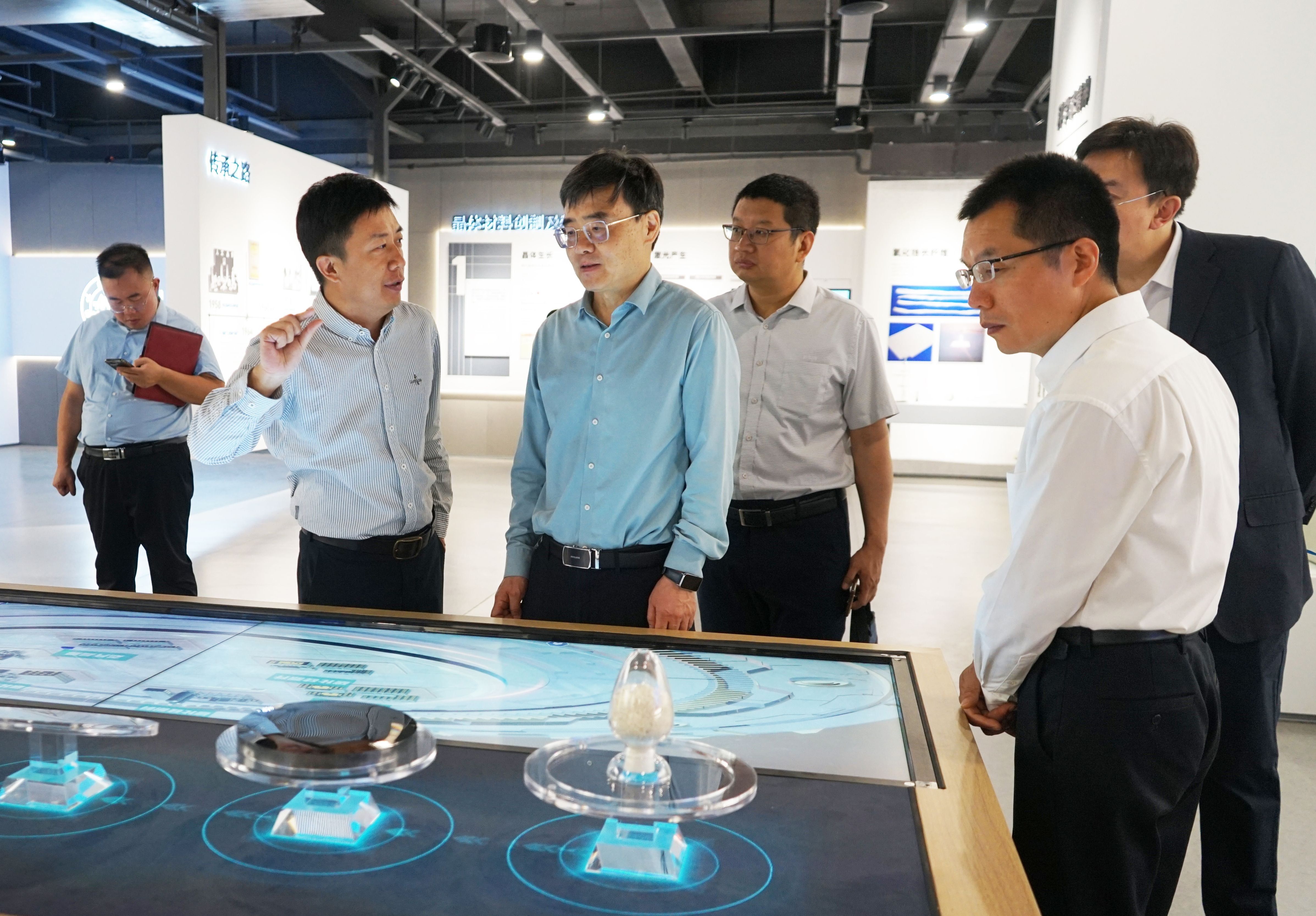 6月5日下午,国家留学基金委副秘书长李青一行到访新一代半导体材料集成攻关大平台调研参观,集成攻关大平台副主任任颖接待来访。来访一行参观了百合漫画 晶体材料科技展厅,详细了解了实...