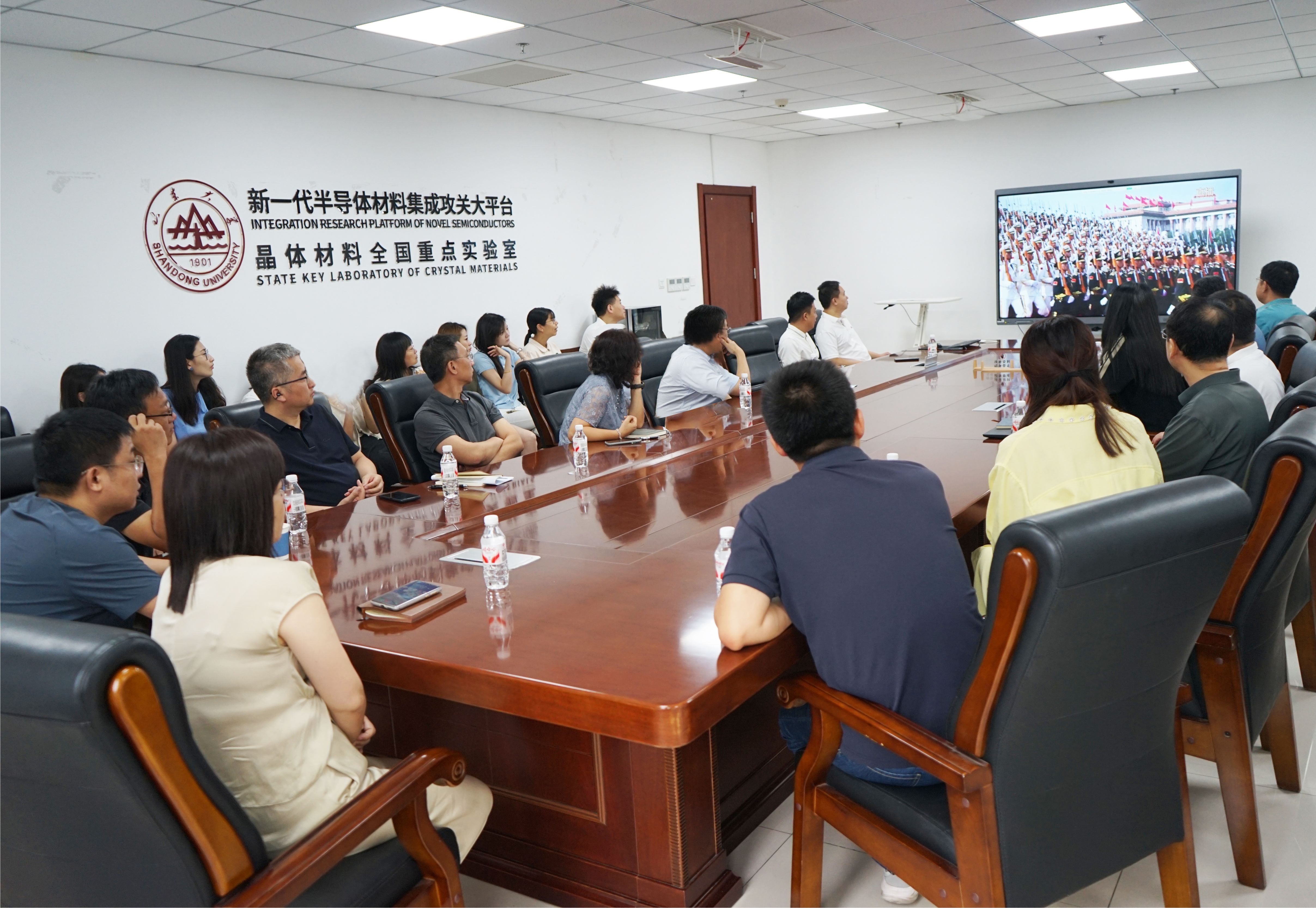 9月3日上午9时,纪念中国人民抗日战争暨世界反法西斯战争胜利80周年大会隆重举行。百合漫画 晶体材料全国重点实验室、新一代半导体材料集成攻关大平台组织全体师生收看直播。师生观看直播...