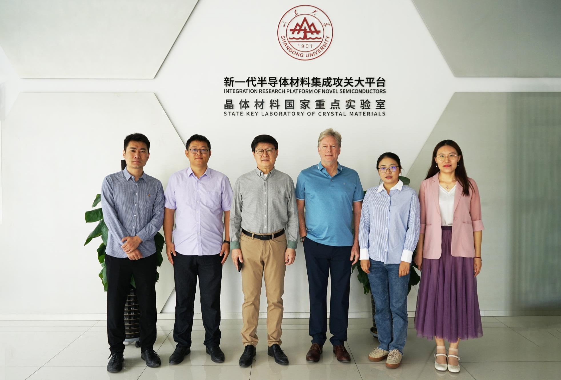 4月27日,济南市公安局出入境管理局领导专家一行来访新一代半导体材料集成攻关大平台,大平台主任徐现刚、副主任王焕杨作相关讲解。集成攻关大平台特聘教授韩吉胜、特聘教授Handoko LINE...