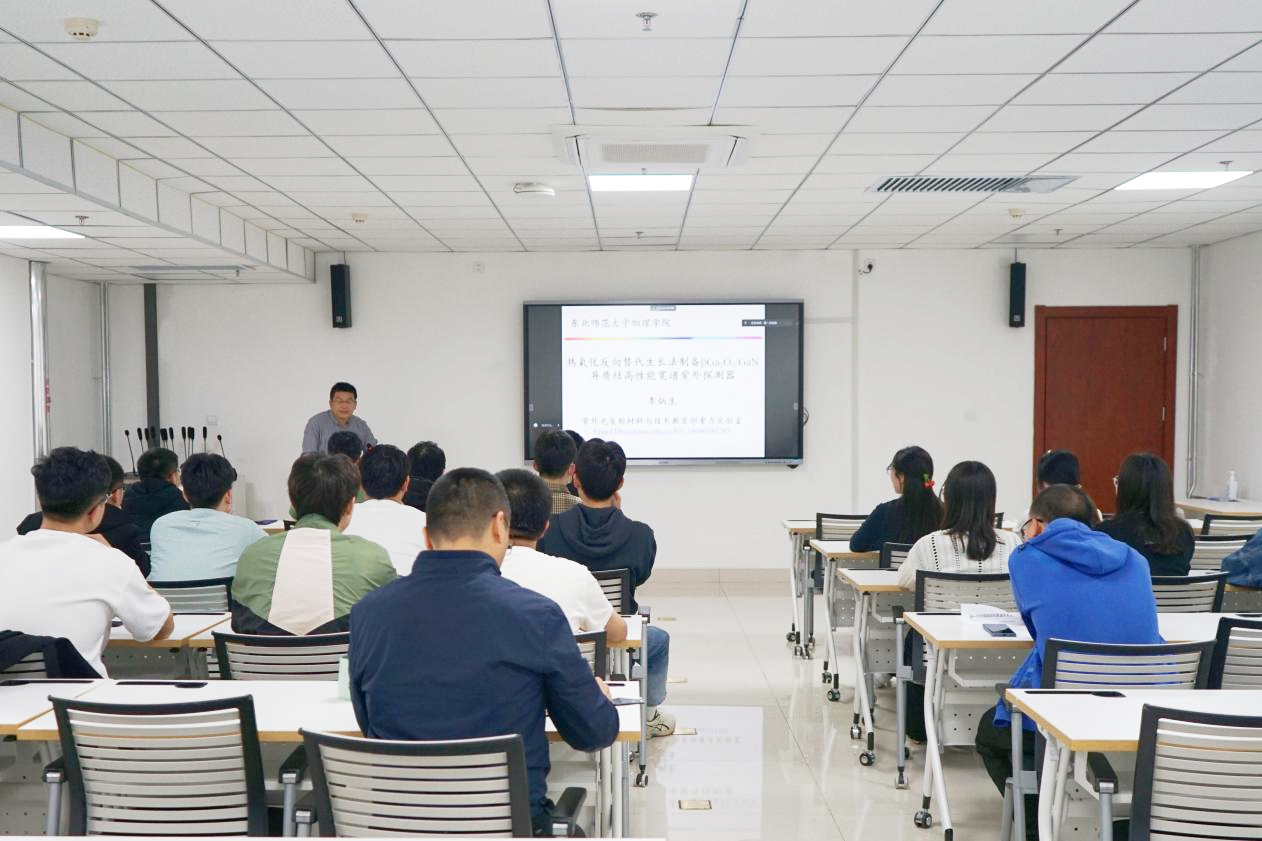 4月27日,第十七期百合漫画 “育晶论坛”成功举办,东北师范大学教授李炳生老师受邀作为本期论坛主讲嘉宾,为平台师生作题为“热氧化反向替代生长法制备β-Ga2O3异质结高性能宽谱紫外探测器”的报告。论坛在半导体研发大楼学术报告厅举办,由大平台副教授穆文祥主持。
