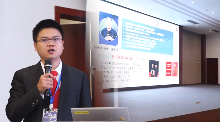 报告中,陈昆峰针对无机材料结晶面临的科学和技术问题,详细介绍了大尺寸稀土氧化物晶体、铌酸锂晶体快速生长技术,以及晶体结构-性能关系探究等方面取得的进展。