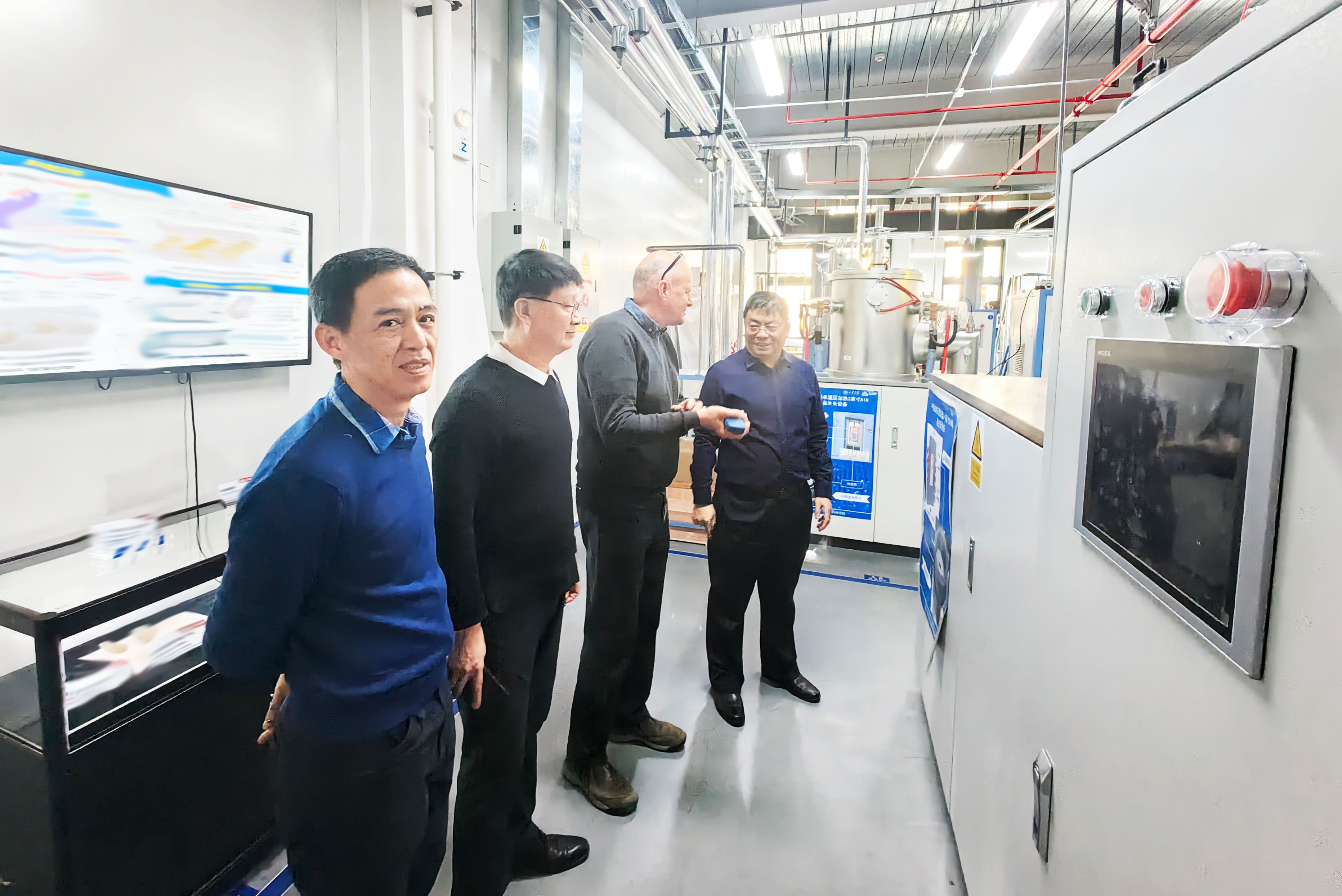 Alan Iacopi对半导体设备使用拥有丰富经验,受邀来到大平台超净间了解实验室建设情况并作技术指导。他对平台器件制备关键设备刻蚀机、沉积设备等进行了检查与维护,对设备运行中水路、电路、气路等系统进行详细排查,确定了实验设备故障问题并进行诊断,提出了优化建议,与器件组师生展开了专业技术讨论。