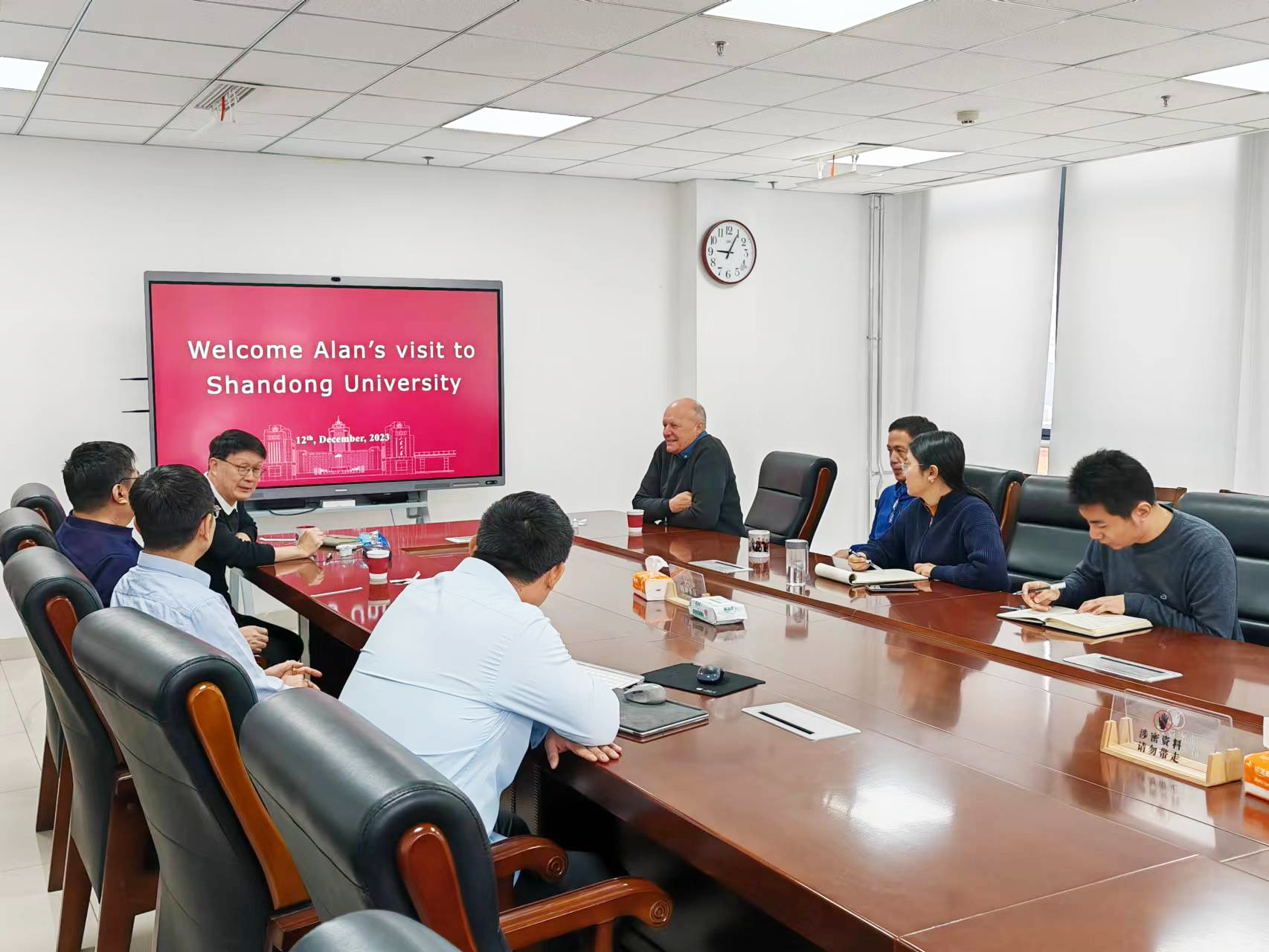 Alan Iacopi研究员到晶体材料国家重点实验室与新一代半导体材料集成攻关大平台实验室参观,徐现刚介绍新一代半导体材料研发进展和集成攻关大平台建设情况,与会专家围绕新一代半导体材料、器件等进行了深入交流与探讨。