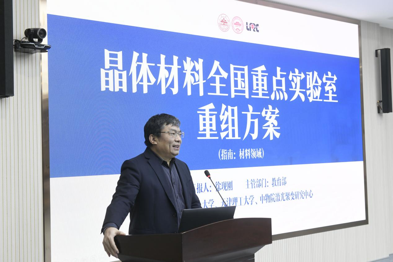 的支持和帮助表示衷心的感谢。他简要介绍了近年来学校事业发展总体情况,充分肯定了本年度实验室在服务国家战略、助力区域发展、打造人才团队、公共平台建设等各方面取得的突出成绩。他强调,实验室要高度重视即将迎来的材料领域全国重点实验室重组评审,坚持以服务国家重大战略急需为导向,加快攻克“卡脖子”关键晶体材料的生长和器件制备难题,力争在新征程上实现新突破,打造晶体材料领域国家战略科技力量,为支撑高水平科技自立自强作出新的山大贡献。