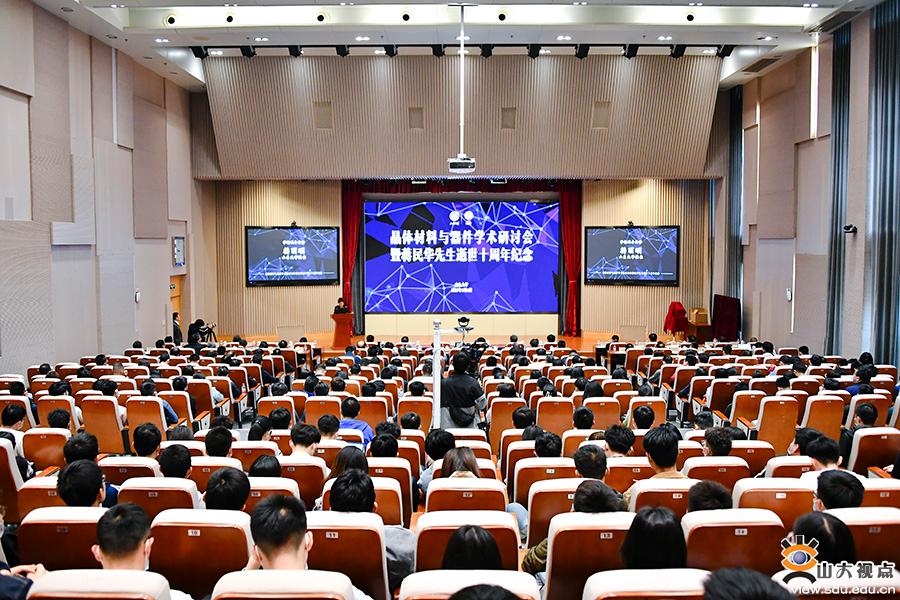副校长易凡主持。蒋民华先生学生代表,晶体材料研究院(晶体材料国家重点实验室)、新一代半导体材料集成攻关大平台、材料学院、物理学院、化学院等师生代表300余人参加会议。