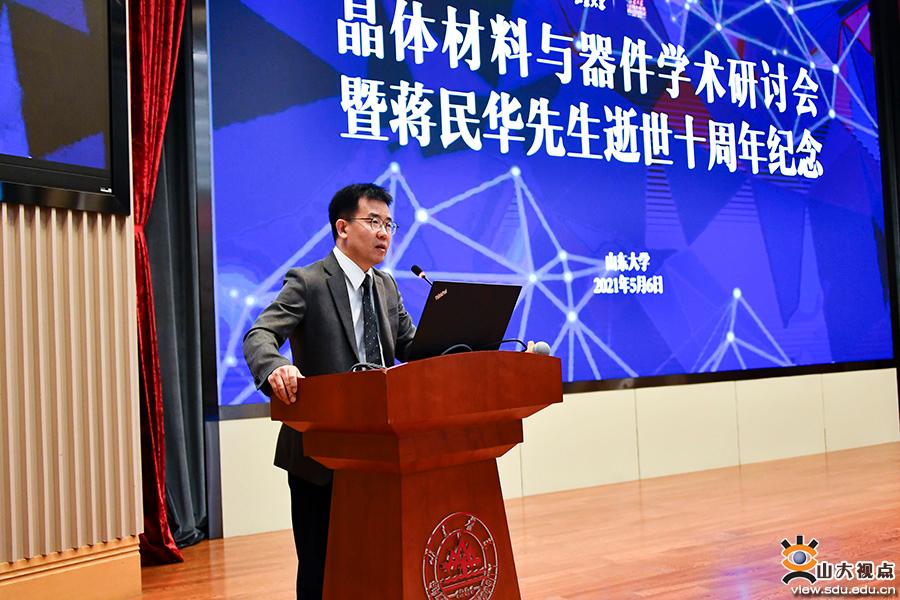 晶体材料国家重点实验室许东教授回顾了实验室的建设和发展历程,追忆了与蒋先生共处的33年的珍贵时光。他表示,今天缅怀蒋先生的光辉业绩,就是要向老一辈的科学家学习,发扬他们团结拼搏、持之以恒的精神,同时注重科研应用和产业化的紧密结合。