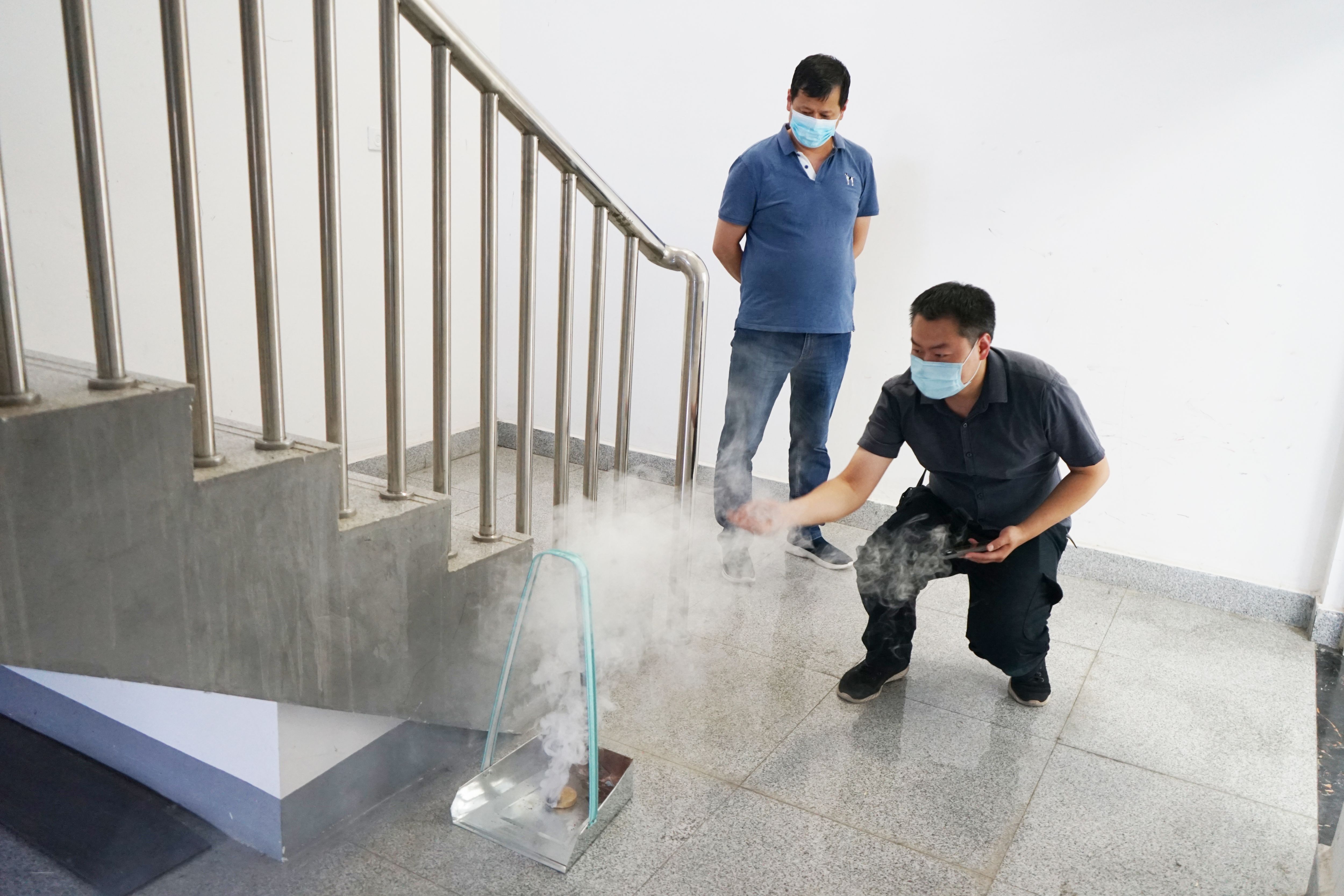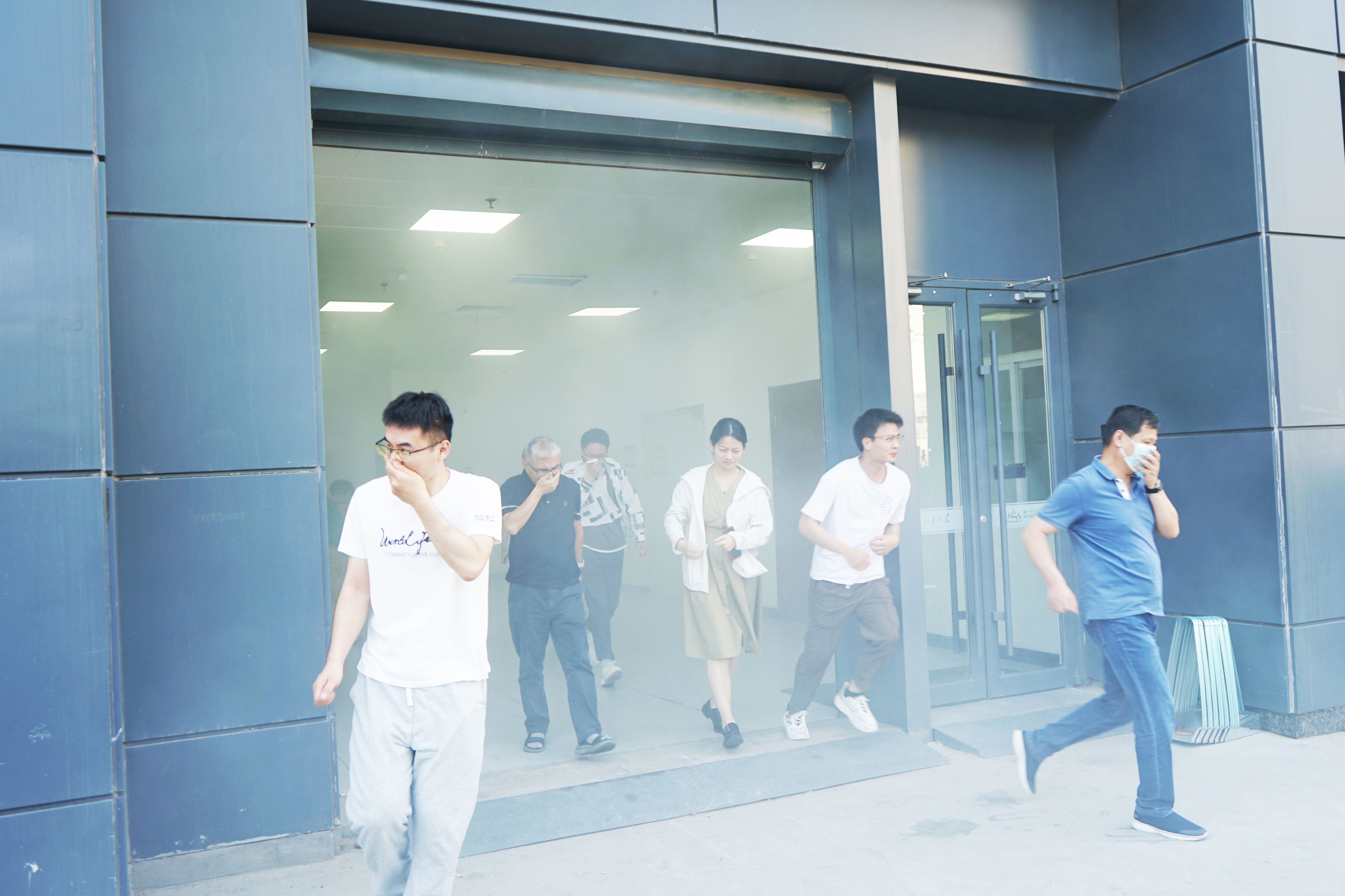 为保证活动安全、顺利开展,大平台与保卫处提前制定详细消防疏散演练方案,并对消防应急演练现场进行认真布置。下午15:00,公安处在半导体研发大楼楼内适当位置点燃烟饼,接到烟雾报警器和喇叭的报警讯号,楼内师生根据报警指挥浸湿毛巾、捂住口鼻,依据疏散人员指示通过楼梯迅速进行逃生。整个演练过程快速、安全、有序、实用性强,达到了预期效果。