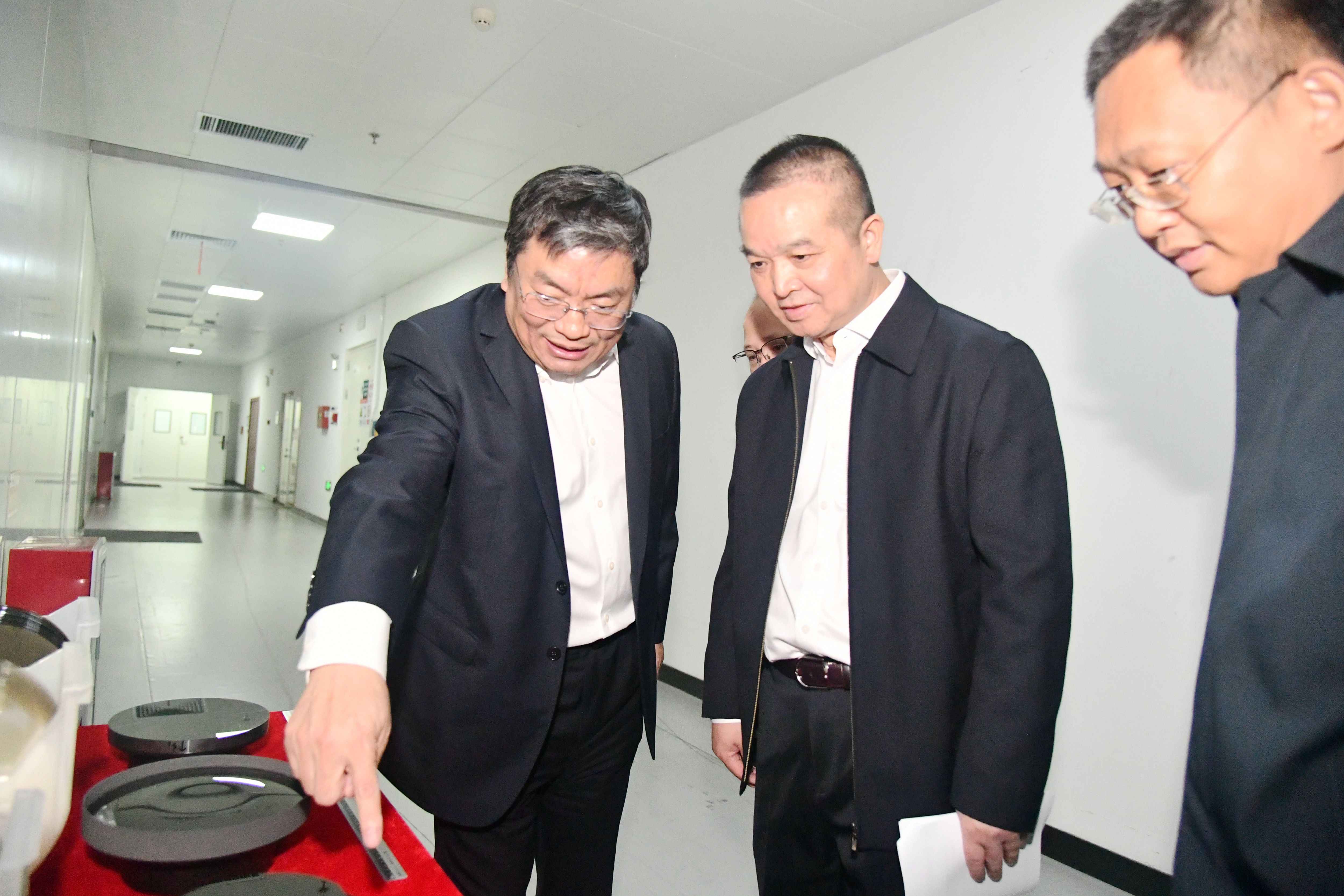 10月10日上午,中国电子信息产业集团有限公司总经济师,华大半导体有限公司党委书记、董事长孙劼一行到新一代半导体材料集成攻关大平台参观调研。百合漫画 党委副书记陈宏伟等领导陪同调研,晶体材料国家重点实验室主任、集成攻关大平台主任徐现刚接待来访。