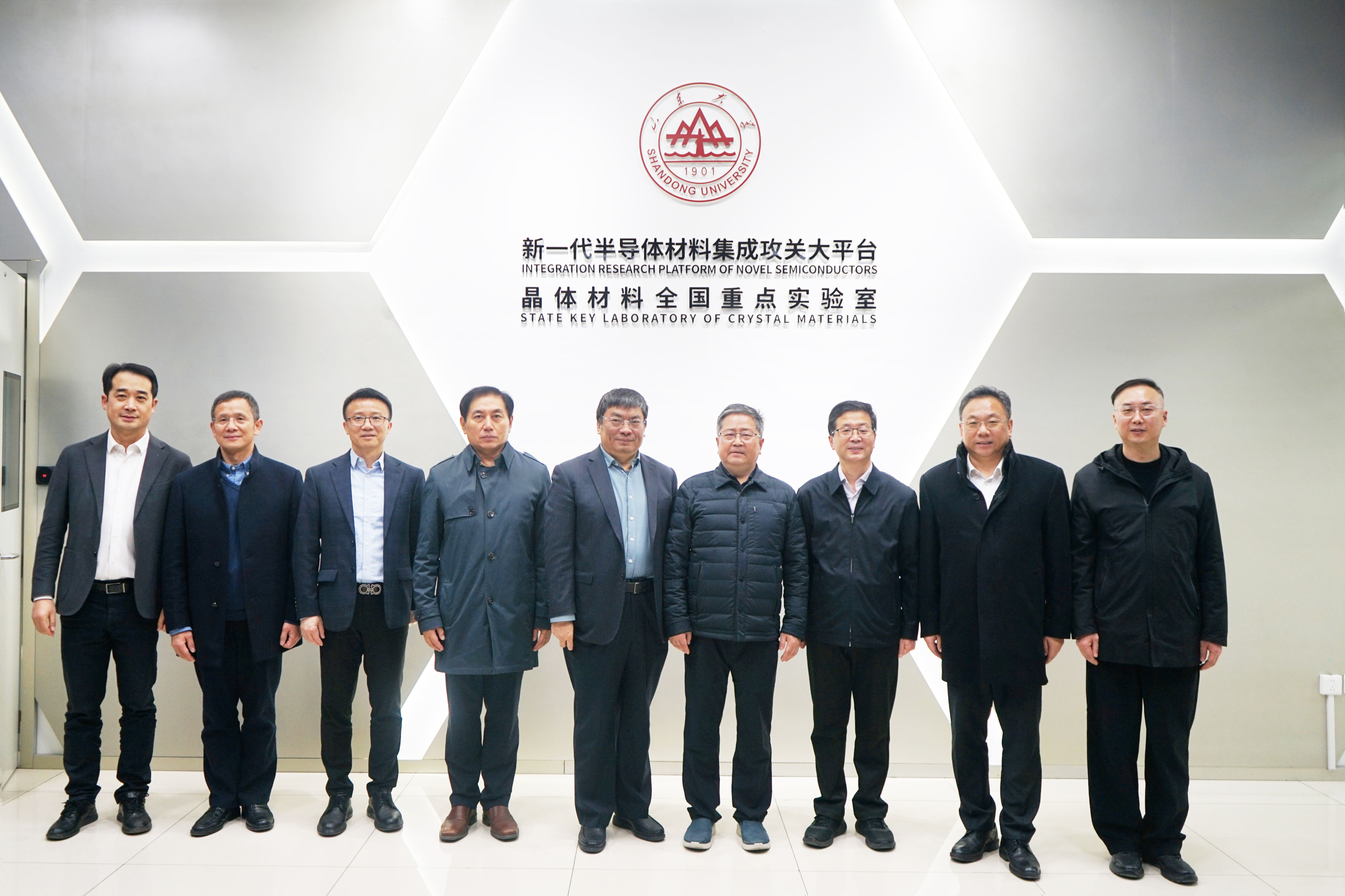 11月24日下午,济南市人民政府党组成员、副市长谢堃,山东省集成电路协会王宏志,歌尔集团董事长姜滨一行来新一代半导体材料集成攻关大平台参观调研,听取平台建设发展情况汇报。晶体材料全国重点实验室主任、集成攻关大平台主任徐现刚接待来访。