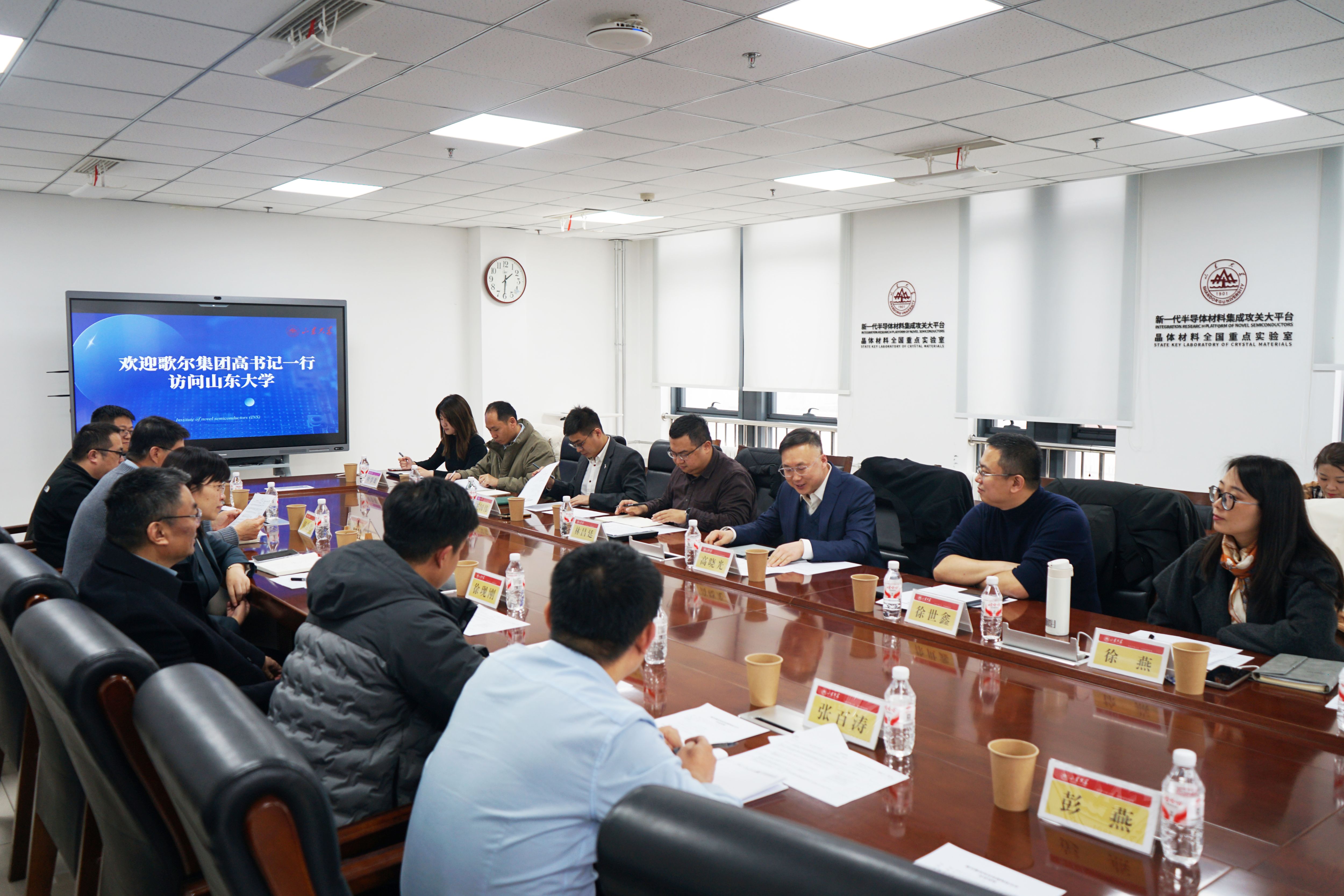 座谈会上,集成攻关大平台主任徐现刚教授介绍了平台在宽禁带半导体材料、器件制备等领域的研究基础,并表示平台始终面向国家战略急需和产业发展需求,积极推动应用型研究与实际应用场景深度融合,期待通过与歌尔的务实合作,加快科技成果向产业一线转化。高晓光书记介绍了歌尔视显的发展情况与技术人才需求。他表示,歌尔与山大前期已建立良好的战略合作基础,期待以此次交流为契机,推动双方在技术研发、人才培养等方面精准对接,实现校企互利共赢。