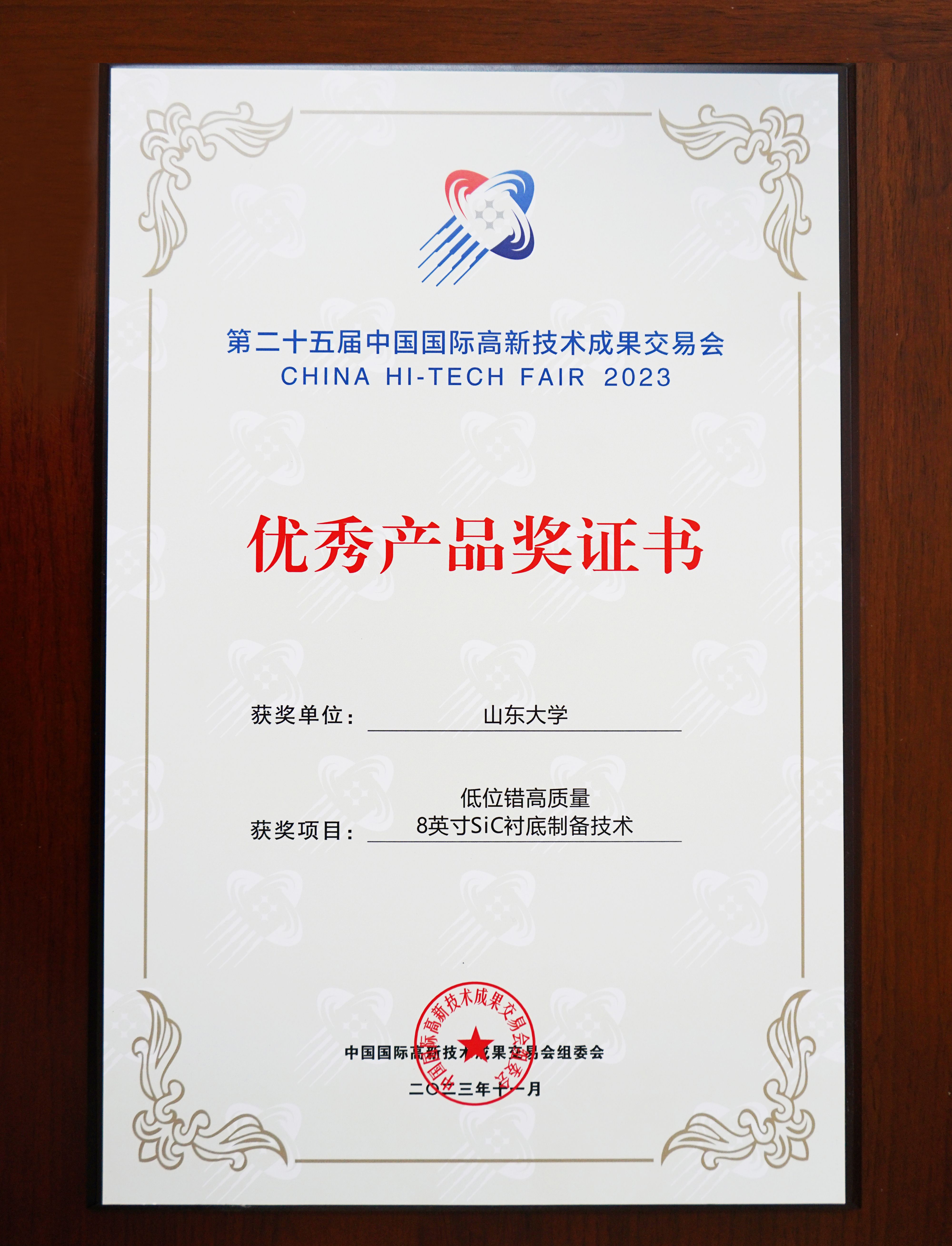 参加科技成果展示和成果交易洽谈活动,并获得“优秀组织奖”和“优秀展示奖”;新一代半导体材料集成攻关大平台碳化硅团队“低错位高质量8英寸SiC衬底制备技术”荣获组委会颁发的“优秀产品奖”。