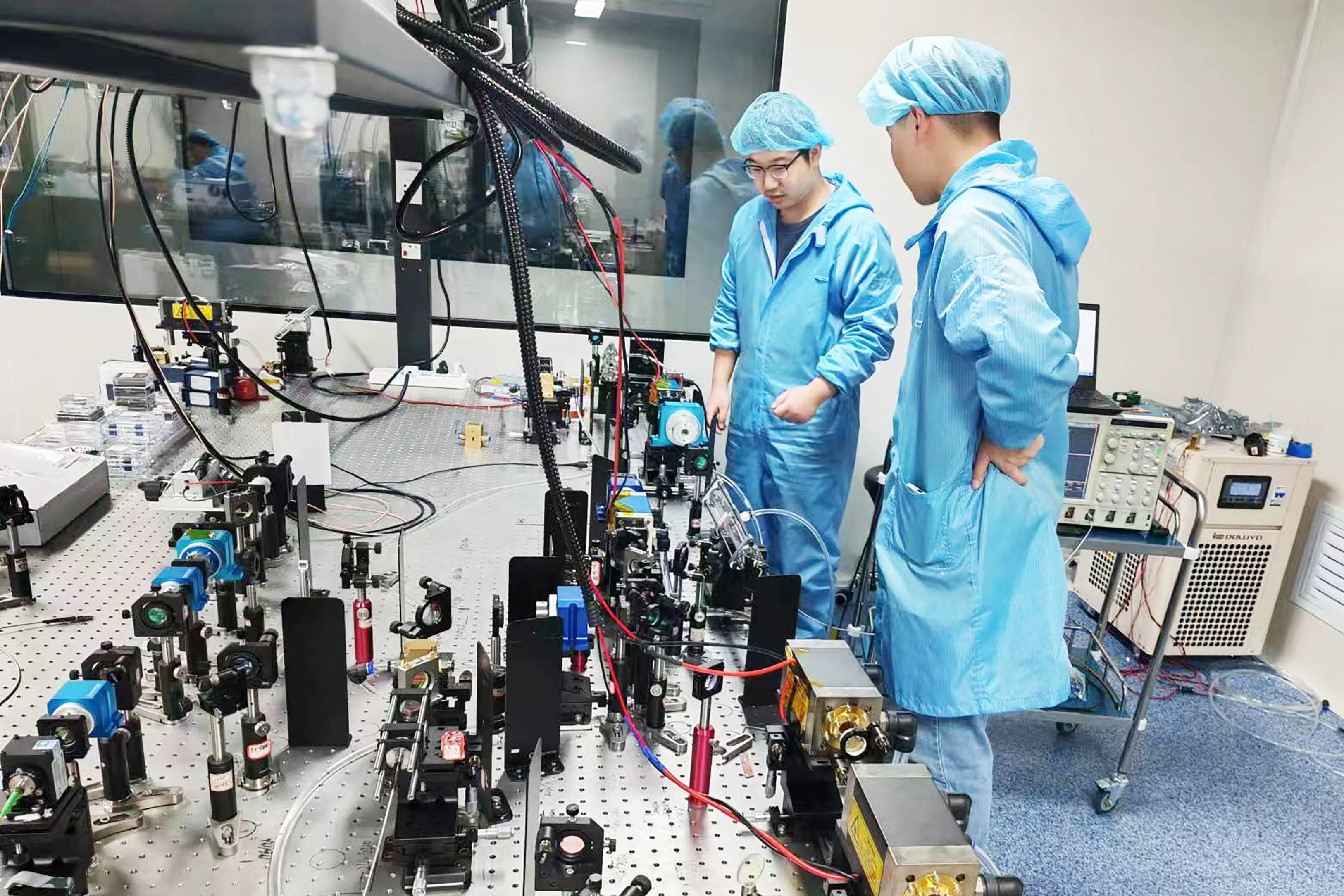 图:新年第一天马铁军博士、李佳桐博士对激光光路进行分析调试
