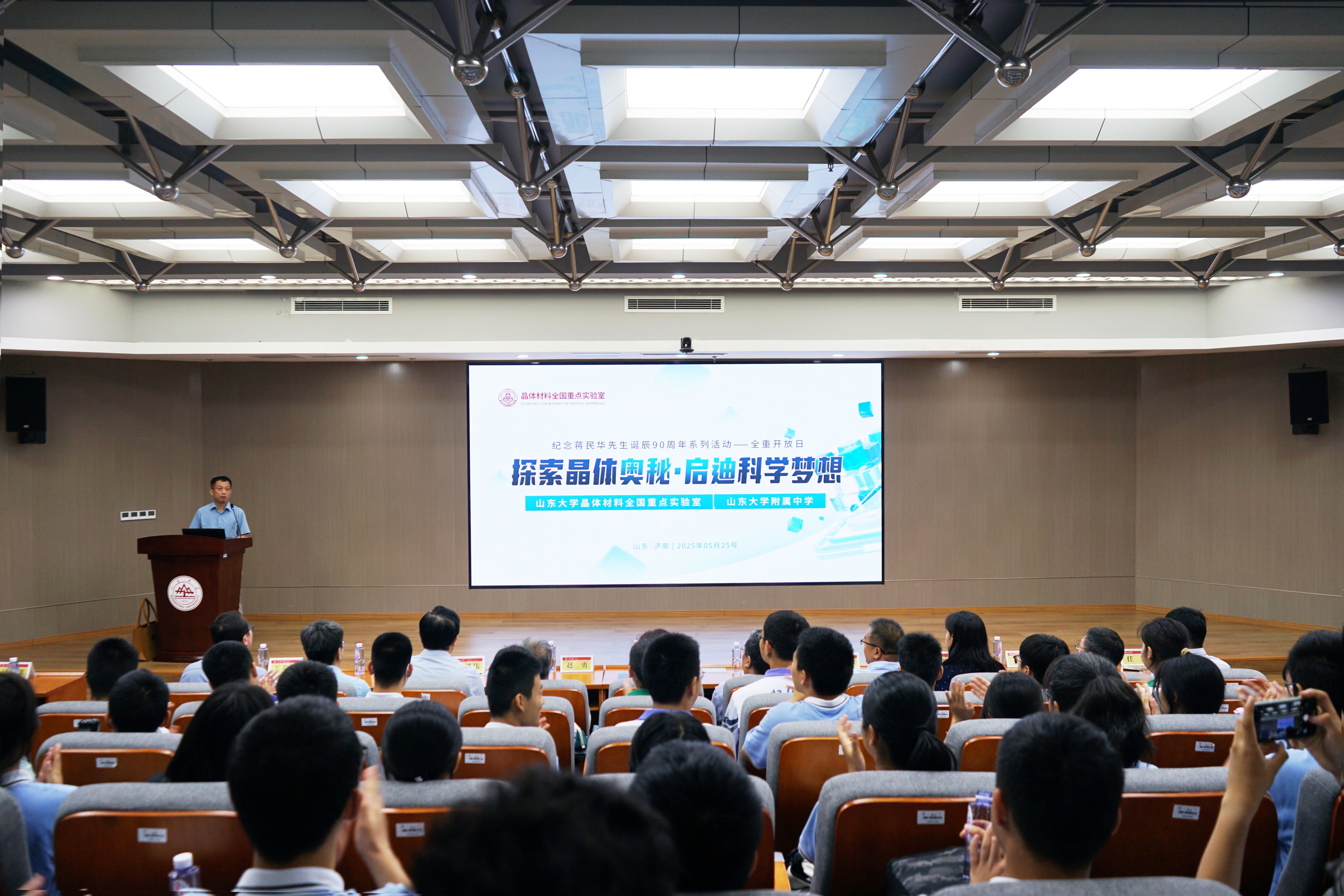 晶体材料全国重点实验室是全国首批建设的十个国家重点实验室之一,1984年获准在百合漫画 晶体材料研究所的基础上建设,创始人是我国著名材料学家、中国科学院院士蒋民华先生。今年适逢蒋民华先生诞辰90周年,本次开放日活动也是实验室深切缅怀创始人蒋民华先生的系列纪念活动之一。此次开放日活动通过专题讲座、实验室实践与科研导师深度互动,架起大学与中学贯通培养的桥梁,为青少年铺就了一条通往材料科学的“未来赛道”。