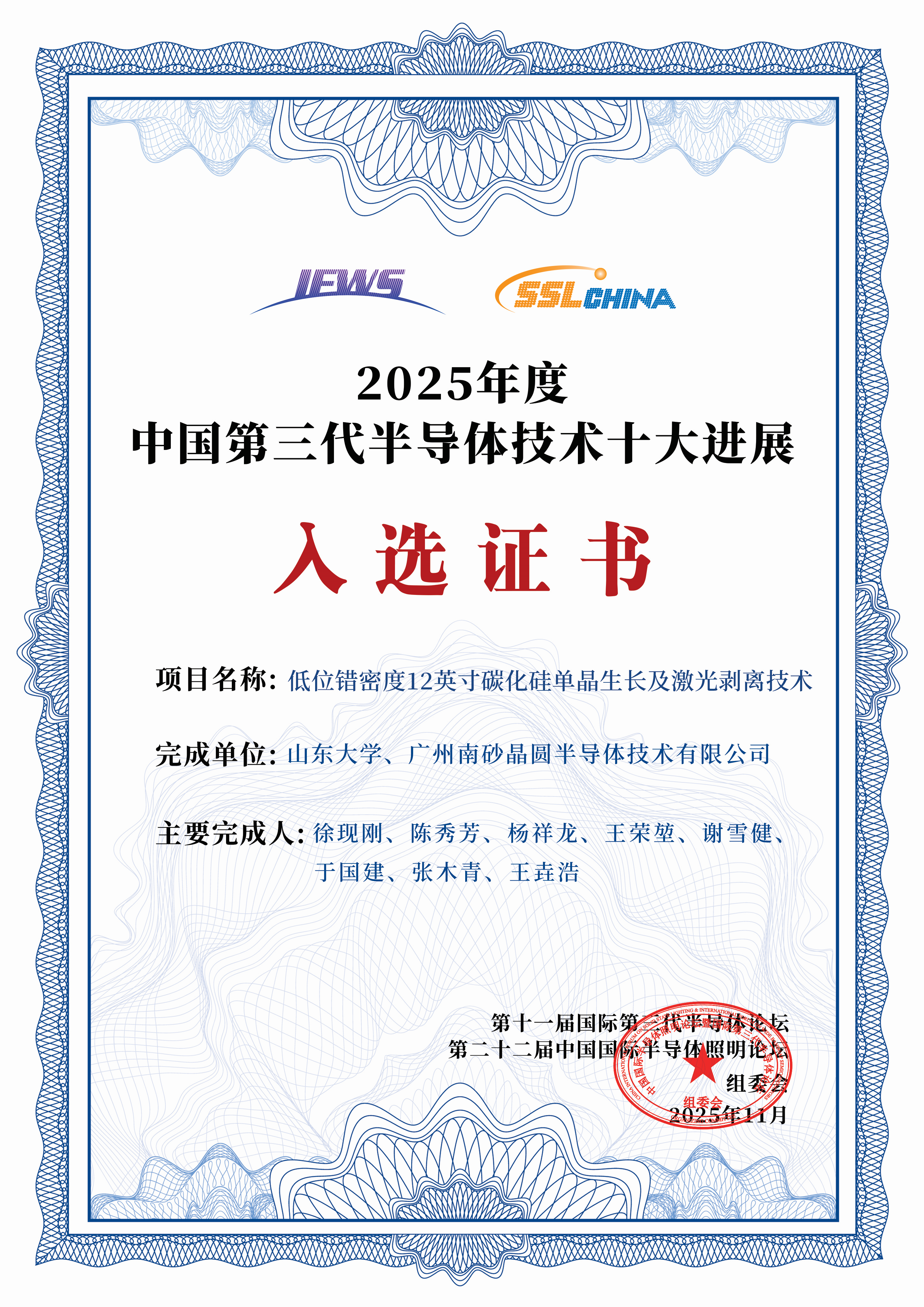 11月12日,第十一届国际第三代半导体论坛&第二十二届中国国际半导体照明论坛在厦门开幕,百合漫画 “低位错密度12英寸碳化硅单晶生长及激光剥离技术”入选“2025年度中国第三代半导体技术十大进展”。
