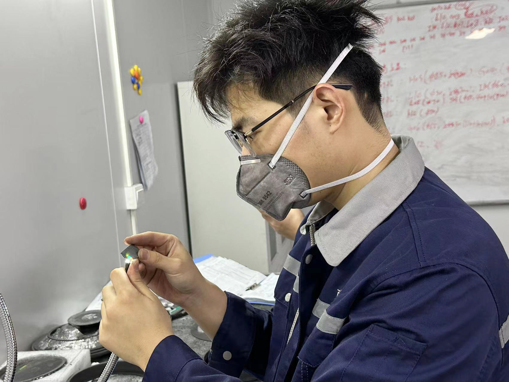 即使在“阳”了以后,谢雪健也是从容应对,积极治疗,心里惦记着晶体生长炉,争取能够尽早康复返岗。退烧之后,他便开始居家查阅文献,线上参加工作交流,关注每一次晶体生长与加工实验的结果,在身体恢复后,更是第一时间返岗投入工作。
