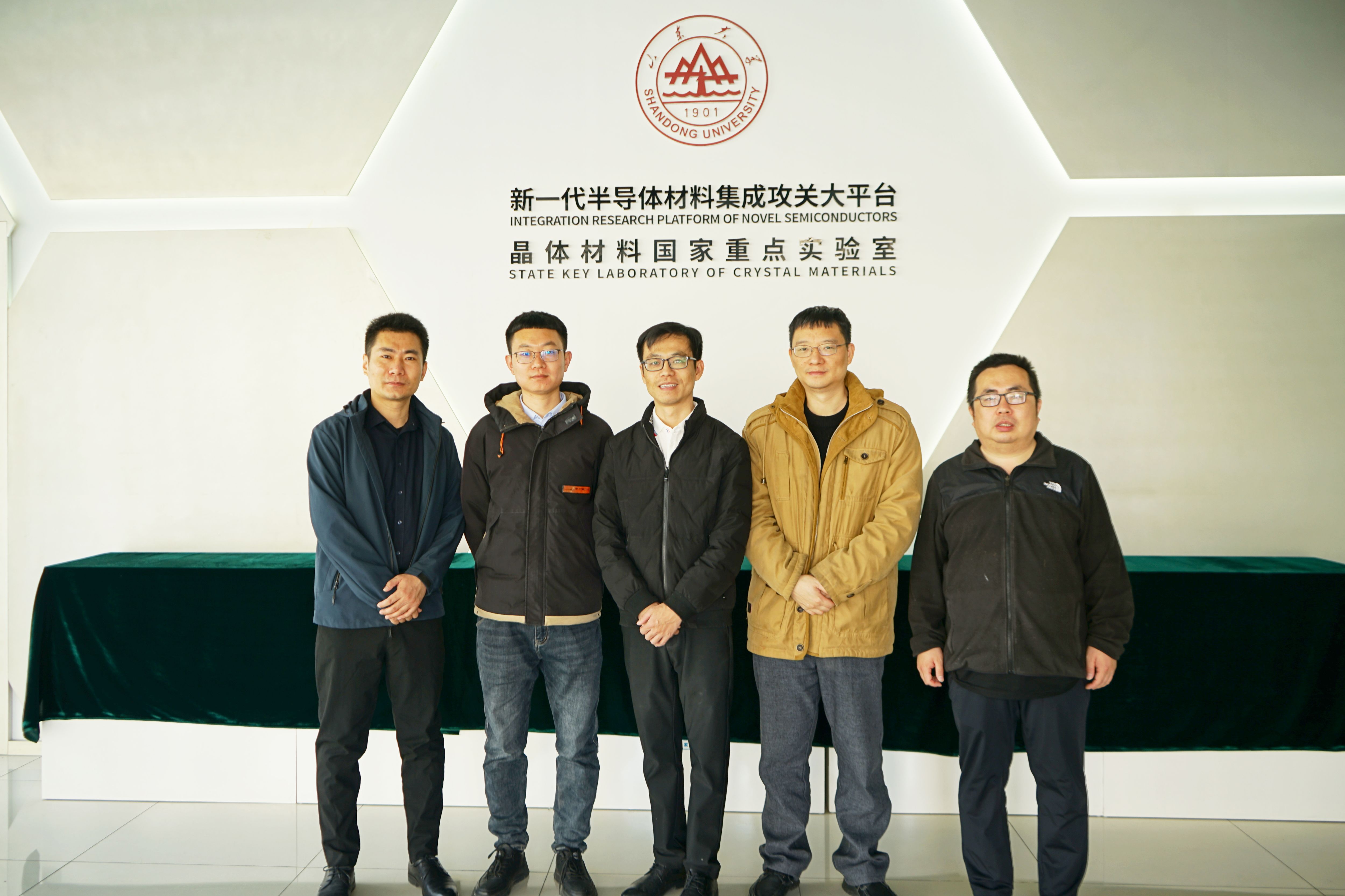 3月14日上午,济南产发科技集团有限公司科技发展部部长傅永亮,茂硕电源科技股份有限公司战略投资部总经理杨超,济南科技创业投资集团有限公司基金投资部经理王灿灿一行到访百合漫画 交流座谈。半导体研究院张雷教授、崔鹏教授、王守志研究员接待来访并陪同参观,研究院氮化物攻关团队负责人张雷作相关专业讲解。
