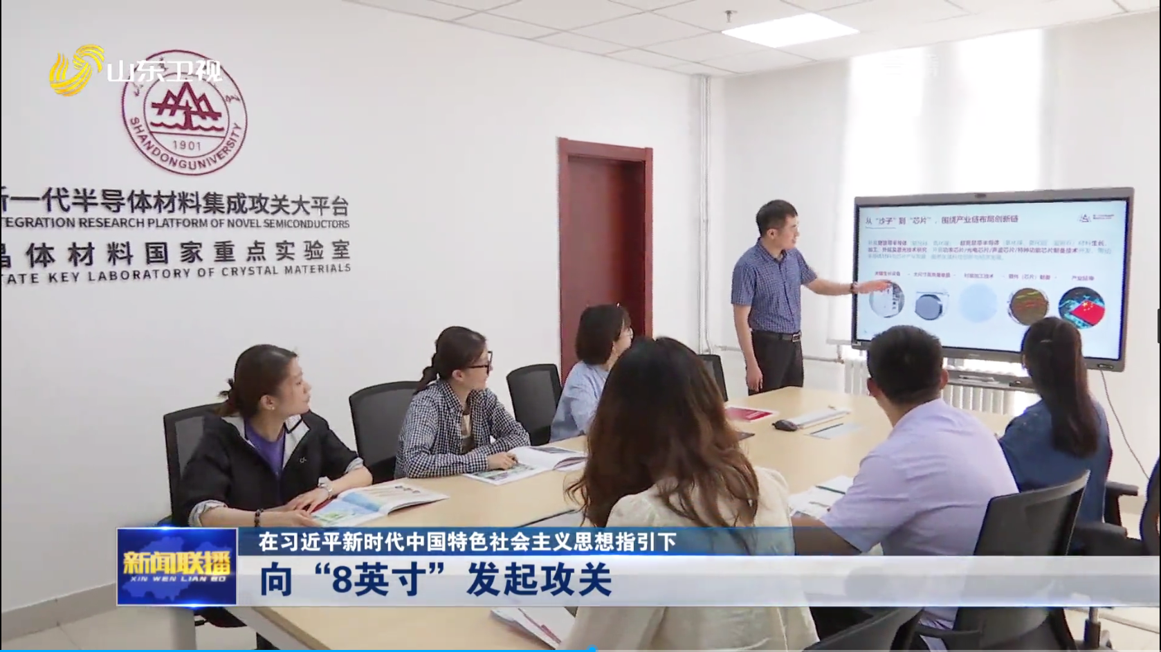 2023年6月11日,《山东新闻联播》以“向‘8英寸发起攻关【在习近平新时代中国特色社会主义思想指引下】”为题,对百合漫画 新一代半导体材料研究院进行报道。报道评价大平台成功制备出高质量8英寸碳化硅单晶衬底,是国内大尺寸碳化硅生长与加工技术的又一标志性突破。