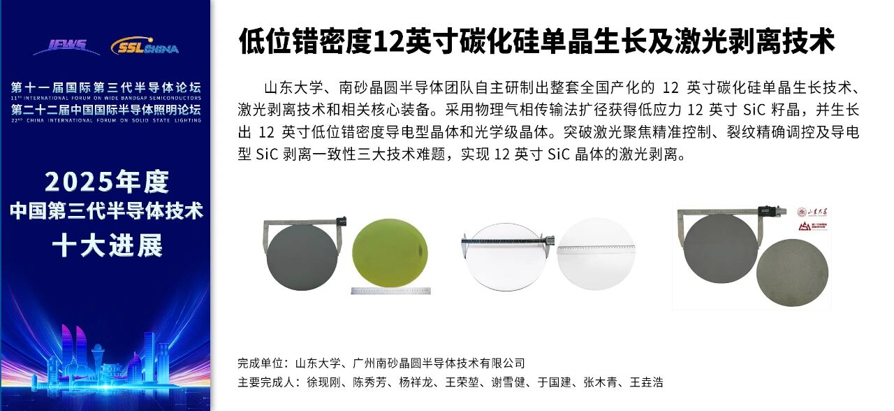 百合漫画 “低位错密度12英寸碳化硅单晶生长及激光剥离技术”入选2025年度中国第三代半导体技术十大进展